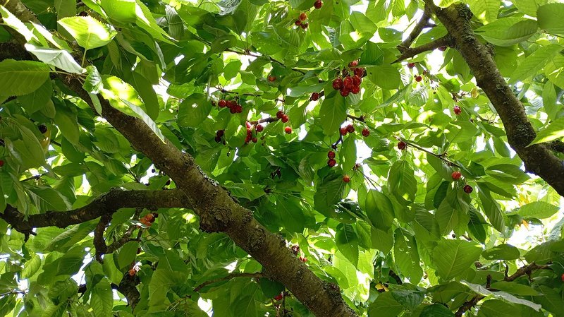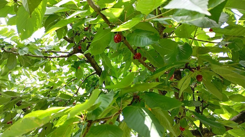Die Kirschfliege wurde dieses Jahr erfolgreich bekämpft, dafür laben sich aber leider einige Amseln an den leckeren Früchten.