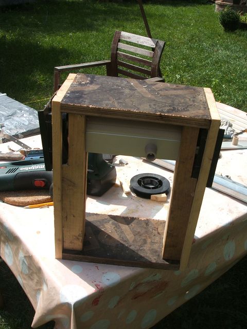 Mein Rolladen aus der Bucht liegt schon seit ner Woche rum, und da hab ich mich mal rangemacht. Ich pfusche etwas, weil ich davon ausgehe, dass ich etliches noch mal neu bauen muss, wenn ich alle mechanischen Probleme erkannt habe. Ich hab schlichtweg keinen Plan, da hilft nur, erst mal anfangen.