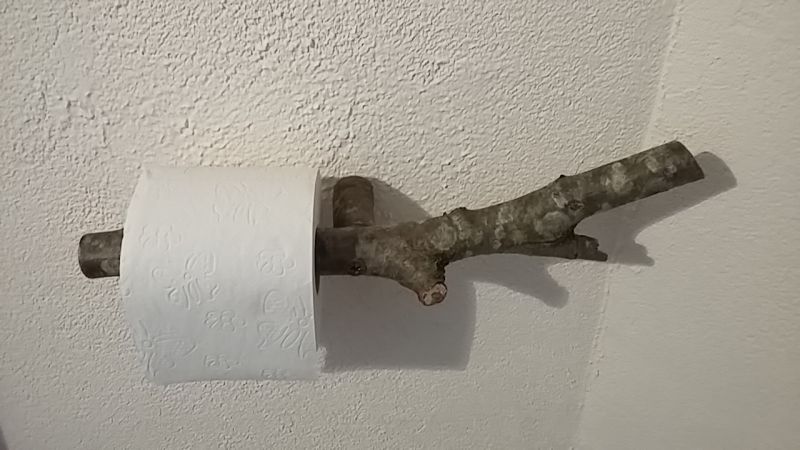 Dazu gab es einen Handtuchalter aus Ästen und einen Klorollenhalter Die Garderobe habe ich aus alten Gartenzaunbrettern gebaut Jetzt geht es erstmal grob im Garten weiter, da passiert nämlich im Moment garnichts. Aber irgendwann muss man ja mal anfangen ... zumindest mit Rasenmähen