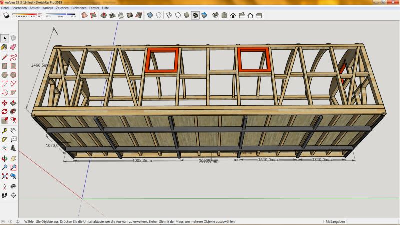 Im Winter hab ich mich dann mittels Youtube-Tutorials mit dem Programm "SketchUp" vertraut gemacht und ein 3d-Modell meines gewünschten Aufbaus erstellt.