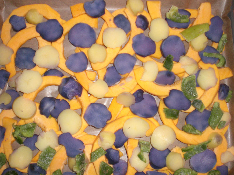 Kürbis, Kartoffeln, Paprika, wie man auf dem Bild sieht.