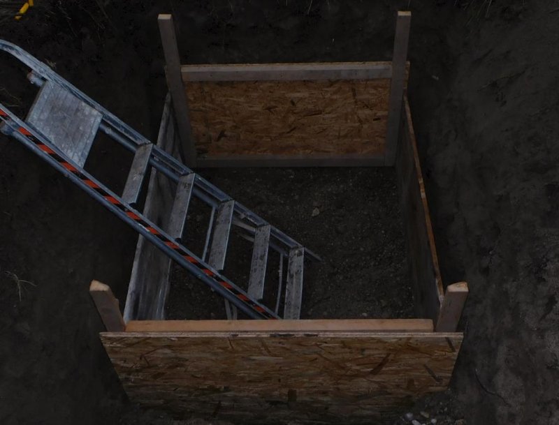Die verbleibende Distanz konnte ich ohne weiter Schalung, in einem kleineren Loch abgraben.