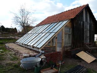 Wir haben alte Frühbeetscheiben (von ner Gärtnerei geschenkt bekommen :daumen: ) an unsere Gartenhütte angebaut. Das meiste an Baumaterial lag hier zum Glück rum oder vom Sperrmüll. War also relativ günstig. Und dadurch, dass es etwas ins Erdreich gebaut wurde, ist es im Sommer hoffentlich etwas ausgeglichen mit dem Klima. Anzucht funktioniert schonmal prima!