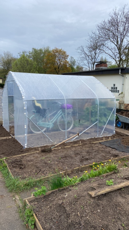 ich hab einen ganz kleinen Krosagro Tunnel, 2,5 m breit und 4 m lang oder so. Im Schrebergarten ist die Grundfläche und die Höhe begrenzt, sonst würde ich meine komplette Anbaufläche übertunneln.