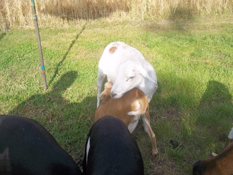 einen neuzugang haben wir zu verzeichnen - so von wegen: wir brauchen noch n rasenmäher: eine kameruner-aue, auch im märz geboren und trinkt mit 5 monaten noch bei der mutter