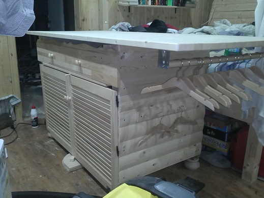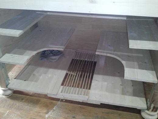 Der Bodenbelag wird mit Holzfliesen realisiert, sollte die Bodenplatte irgendwann mal fertig werden