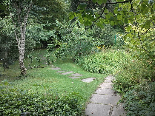 Im Hintergrund sieht man ein weiteres Hügelbeet was wie ein "C" um einen weiteren Teich verläuft.