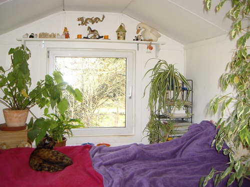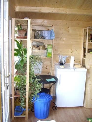 Rechtzeitig bevor es Winter wird, steht das 2. Gartenhaus (bei den Enten) mit Strom- und Wasseranschluss und Elektroöfeli als Frostschutz für die riesig gewordenen Zimmerpflanzen. Seit August habe ich rumgewerkt und paar Wochen auf hilfreiche Hand für schwere OSB Platten über Isolation auf Dach gewartet. Auch normal isolierte Fenster und Tür konnte ich natürlich nicht selber einbauen..... hätte ich doch früher Bodybuilding gemacht!!!