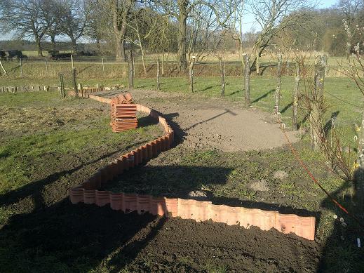 Der Bauer hatte ein paar Ballen Heu auf dem Nachbargrundstück abgelegt über Winter und war die am abtransportieren. Bissel durchgesuppt sahen die schon aus an der Stelle wo die auflagen. Ich hab ihn gefragt ob er einen über hat für mich und schon 5 min später lag einer bei mir auf dem Land. Hatte da schon ein Streifen gefräst wo ich dann Heukartoffeln machen werde und somit wieder ein Stück Land dem Gemüseanbau zuführen kann, über die nächsten Jahre. Den Streifen werde ich demnächst noch mal fräsen und dann die Kartoffeln auslegen.
