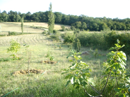 Ich mach mal lieber weiter mit meinem Bericht. Frühling 2011: Viel Zeit brauch ich, um nach Handwerkern zu suchen, damit ich einen Raum für alle meine Sachen habe, die im Gepäckwagen bei über 50 Grad schmoren. Von 20 Terminen wird höchstens 1 eingehalten, der Kostenvoranschlag lässt auf sich warten und kommt schlussendlich gar nicht. Dazwischen müssen schnellstmöglich meine Bäume im Topf, die grösser als 1m sind in den Boden. 90 % des Grundstücks ist von Wald umgeben, nur 400m der Zufahrt entlang, ausgerechnet die Westseite, ist offen. Da pflanze ich 60 Tiefwurzler (Winde sehr heftig), immergrün und laubabwerfend gemischt, versetzt in 3 Reihen. Reiner Lehmboden, bereits im April hart wie Beton, also vorwässern, Loch 40x40 und 60 tief, Aushub mit Sand und Kompost mischen, hohen Giessrand, und obendrauf dicke Mulchschicht Entenmist.