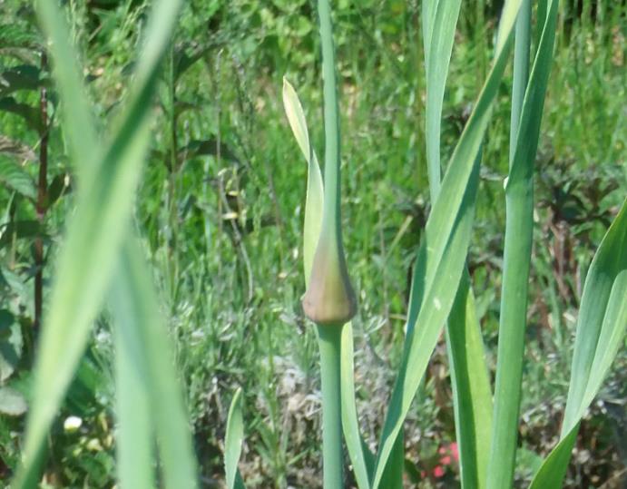 Ich hätt mal auf Knoblauchknospe getippt. Keine Ahnung wie man auf Deutsch dazu sagt, auf Englisch heißen die Dinger Scapes.