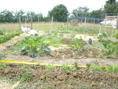 Die Tomaten im Hintergrund sind an den Zaun hochgebunden, alles was rausgewachsen ist, hat die Ziegen glücklich gemacht. Dass sie aber auch die ganzen Pflanzen rausziehen können, daran habe ich nicht gedacht :schmoll: