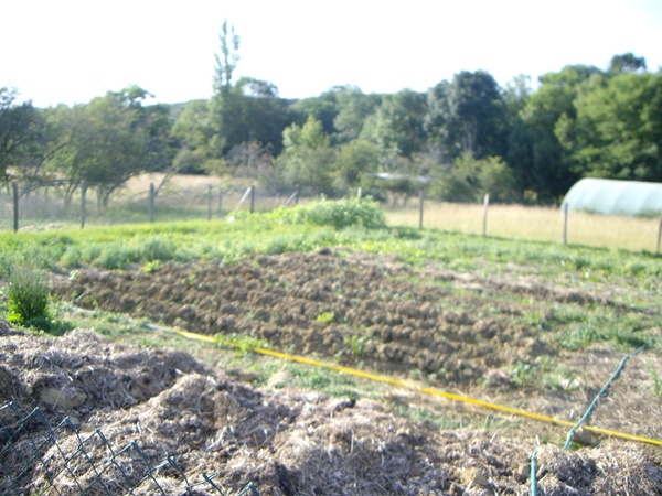 Bin schon ziemlich spät dran mit Säen und Pflanzen, Bauern hier sagen "muss alles bis Ende März im Boden sein". Neben Kartoffeln säe ich noch Dinkel Gerste Hafer und Sonnenblumen. Vorn im Bild Pferdemist aus dem Folientunnel.