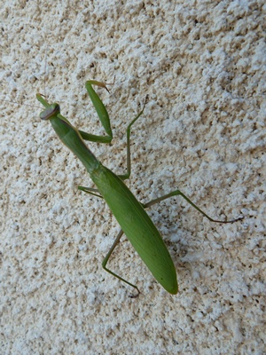 Gottesanbeterinnen begegnen mir im Sommer öfter. Kann ganz nah mit dem Gesicht hin und mit ihnen plaudern, sie drehen mir das Köpflein zu.