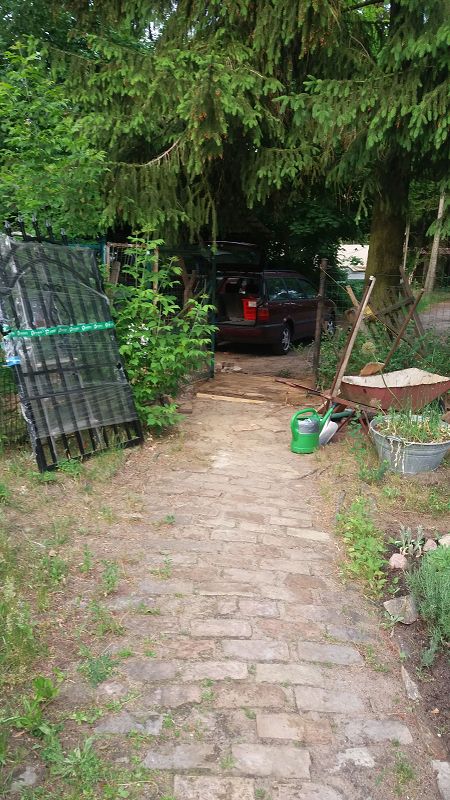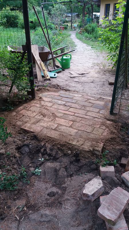 Also zumindest ein Rundbogen muss sein, ich bin leider vernarrt in die Idee, und dafür hab ich Steine genug. Aber erst mal muss dieses ranzige Teil weg.