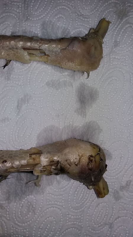 Jedenfalls wollt ich schon wissen, ob wir das Vieh hätten retten können, drum hab ich die Beine etwas oberhalb vom Knie abgeschnitten, und bisschen gekocht, damit ich besser "sezieren" kann.