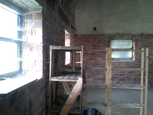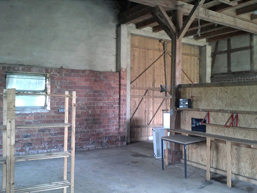 In die alte Werkstatt soll später Küche (S/SO), Esszimmer(W) und Vorratsraum(N) und der Hauseingang (N/NO)