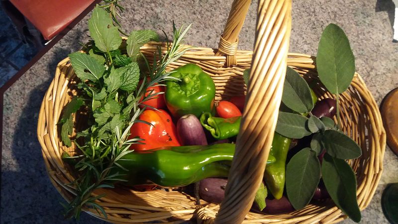 Ich habe heute Calendula arvensis geerntet, Saatgut von Schizinepeta tenuifolia und Plantago "Purple Perversion". Selbstgesäte Rote Bete, Rote Bete "Goldgelbe", Rote Bete "Zigeuner", die Kavbuz-Kürbisse (Kreuzung aus Wassermelone und Kürbis), letzte Nashi-Birnen und Fallobst von Grahams Jubiläumsapfel.
