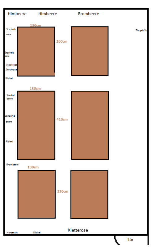 In Anhang hab ich euch mal meinen Küchengarten gezeichnet, leider hab ich so gar keine Idee wie ich meine Beete am besten Bepflanzen soll