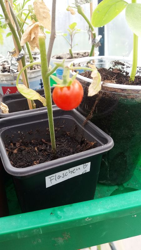Nicht gepasst haben für mich von Dreschflegel die Sorten Fredi (ganze Pflanzen waren mir irgendwie zu schwach und empfindlich), auch die Cocktailtomate Sibirisches Birnchen hat mich von der Menge her nicht überzeugt und mit einer Wildtomate (Golden Current?) konnte ich mich nicht einigen (Braunfäule, weil zu viele Innentriebe, nicht ausgegeizt).