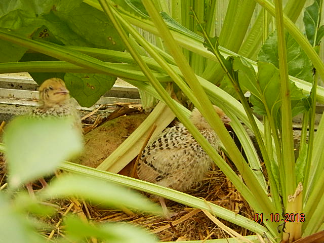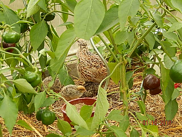 Sieht witzig aus, wie die Wachteln zwischen den Paprikas rumlaufen!