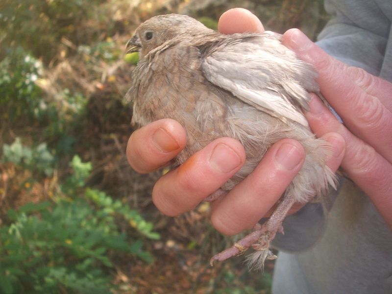 Also ich mach heute nachmittag noch mal ein neues Foto mit ner normalen Wachtel daneben als vergleich. Das Ding ist winzig. Das ist auch Cristinas Hand, nicht meine. Es gab auch schon einen kleinen Unfall: Zwischen Staubbad und Wand war ein Spalt, so 4 cm. Da ist die reingerutscht und kam dann nicht mehr raus Hab ich jetzt anders gestellt, damit das nicht mehr passieren kann......