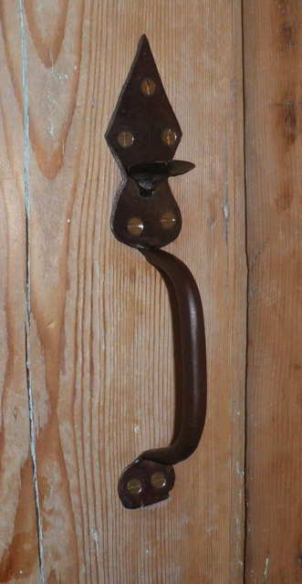 Eine weitere Art ist der Drehknopf, wie man ihn an alten Klotüren findet. Etwas unbequem für häufigen Gebrauch, aber einfach zu montieren. Du brauchst nur ein Loch für den Schlüssel oder Drehgriffdorn durch die Tür zu machen.