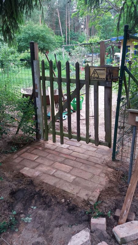 Also zumindest ein Rundbogen muss sein, ich bin leider vernarrt in die Idee, und dafür hab ich Steine genug. Aber erst mal muss dieses ranzige Teil weg.