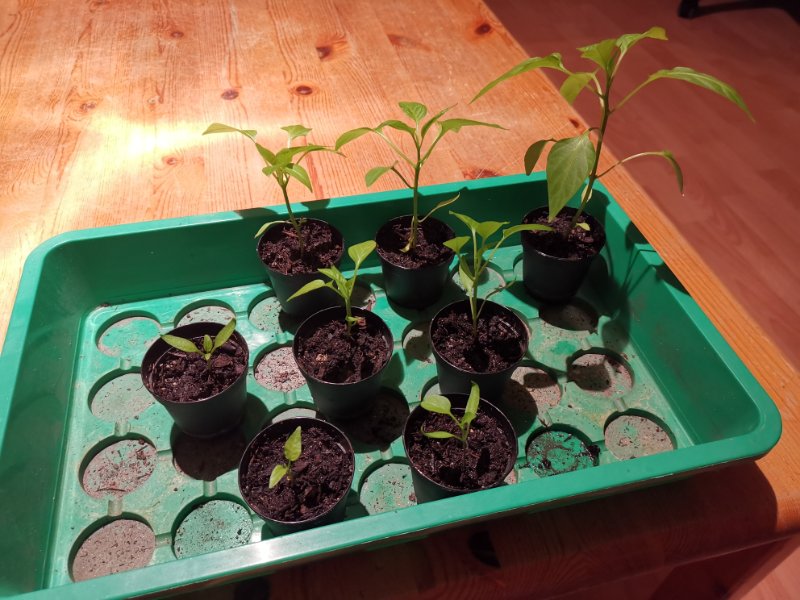 Es war im September ein spontaner Einfall, Paprikas mal zu einer ganz ungewöhnlichen Zeit auszusäen und es ist spannend, wie sie sich noch entwickeln werden. Bis jetzt schau'n sie noch recht ordentlich aus.