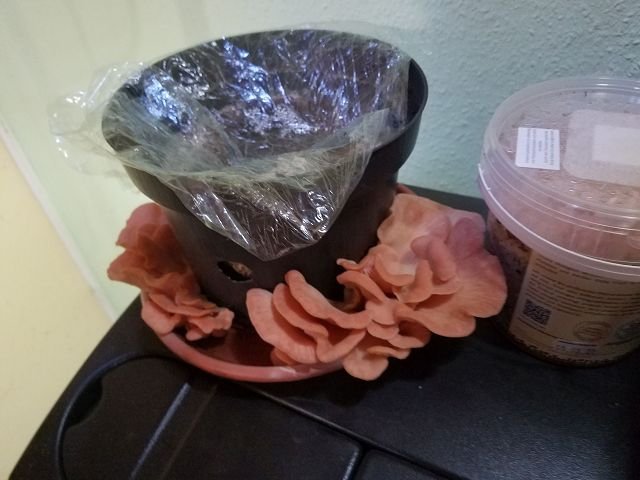 Also das mit dem Rosenseitling funkioniert so halbwegs. Die Berichte, wie man es richtig macht sind oftmals widersprüchlich, ich taste mich ran. Ich hatte inzwischen drei Ernten, küchenfertig a 200, 100 und jetzt wieder 200g. Die äääh, Fruchtfolge ist deutlich schneller als beschrieben, nach der ersten Ernte eine Woche später eben die 100 gr und jetzt nach 14 Tagen wieder 200. Inzwischen steht das Töpfchen aber auch permanent auf dem Aquarium, was so 26 Grad Wassertemperatur hat. Auch inzwischen weiß ich, was sich oben bildet wird alles nix, auch hat es keinen Sinn seitlich Löcher rein zu schneiden, wenn der Pilz es für richtig hält drückt er sich gnadenlos unten aus dem Topfboden raus. .