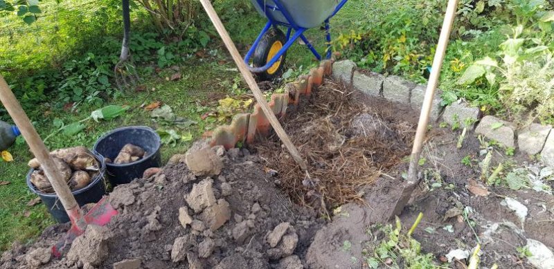 Ich habe nun an dieser Stelle den Boden über einen Spatenstich ausgehoben und eine Schicht Eselmist eingebracht, in der Hoffnung dadurch diese Stelle aufzubessern. Das waren dann noch mal etwa 20 m² Gartenland die richtig Arbeit machten. Schauen wir mal....