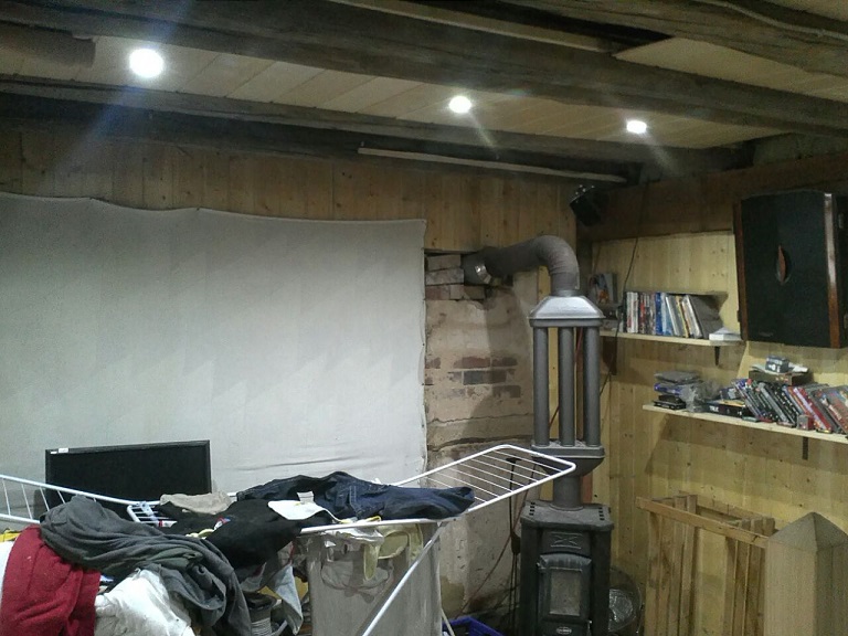 Rauchgaskühler. Bringt laut Papier weitere 3-5KW :-) Hinterm Ofen ist ein Ventiladuddel der die Luft zum Zirkulieren bringt. Mehrwert: ~5° und beachtliches Wohlfühlklima. Sogar an den Füßen :lol: