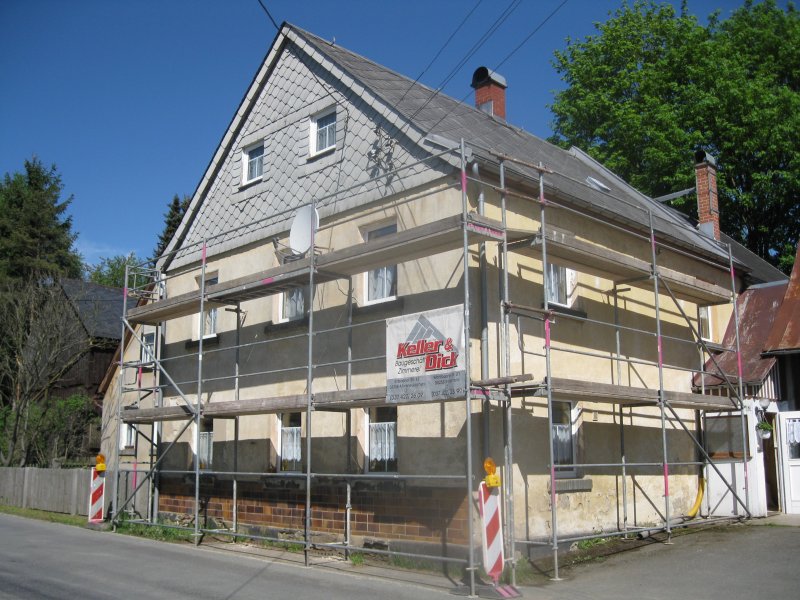 Naja, sooo riesig ist die nicht. Auch wenn nach hinten raus auch noch Zimmer sind. Aber die Rückseite hab ich schon vor ca. 10 Jahren gemacht (bzw. teilweise machen lassen, da war der Putz noch "abber" und auch die Entwässerung kaputt).Minze hat geschrieben:Ach Du meine Güte, was für eine Riesenhütte, das ist richtig Arbeit.