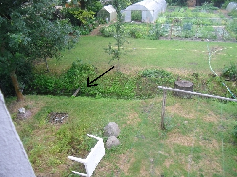 Gestern abend wurde es hier etwas nass, nur ca. 80mm in ca. 2 Stunden. Andere Leute im Dorf hatten sogar 96 mm gemessen. Unser Graben im Garten ist erstmals seit ich hier wohne, und dass sind nun schon 19 Jahre, über die Ufer getreten.