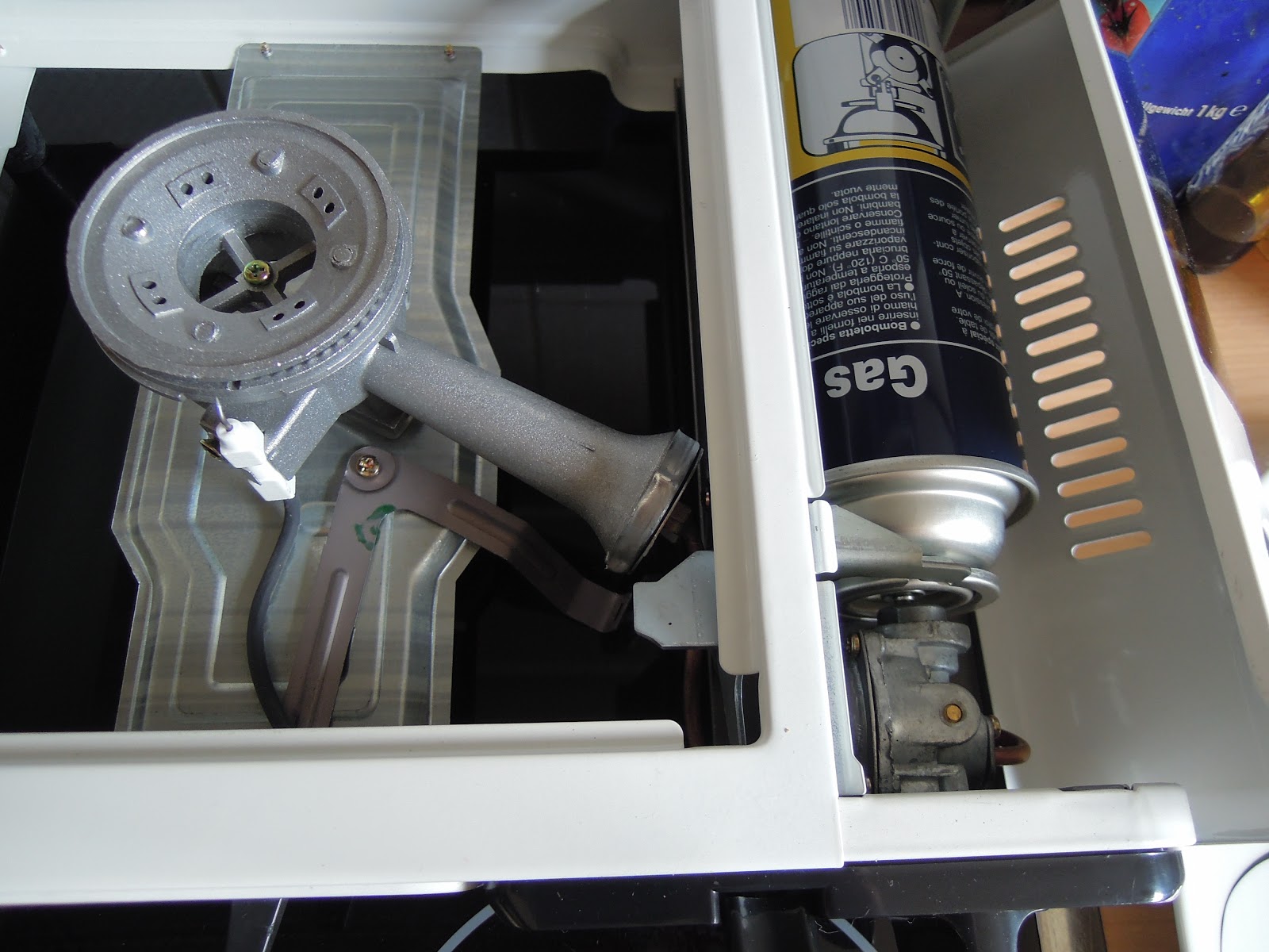 Nimm mal den Deckel vom Brenner ab.