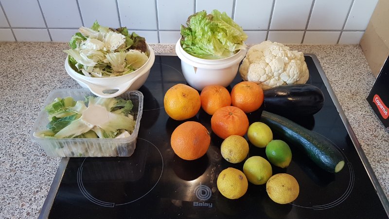 Ich habe heute zum 1. Mal mir ein Überraschungspaket mit Obst und Gemüse im Edeka im Nachbarort abgeholt. Über die App https://toogoodtogo.de/de/. Deren Slogan ist: "Wir retten Lebensmittel vor der Verschwendung". Man kann dann Lebensmittel in bestimmten Geschäften oder Gerichte in Restaurants zu einem vergünstigten Preis abholen, die sonst weggeworfen würden. Weil sie abends übrig bleiben oder nicht mehr ganz frisch sind.